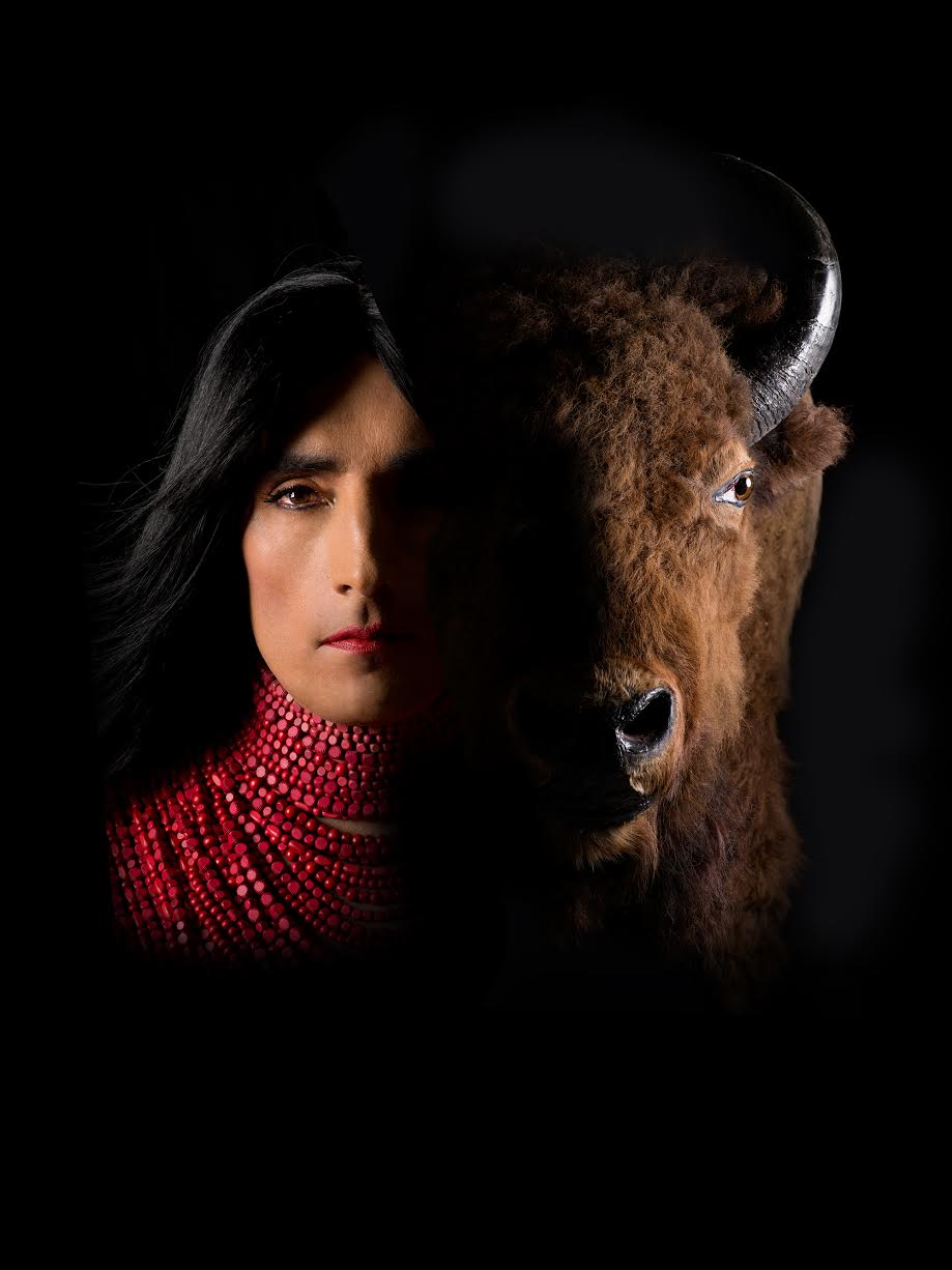 Monkman’s installation references the near extinction of the American bison in the 1800s when humans killed approximately 50 million, reducing their numbers to the hundreds.